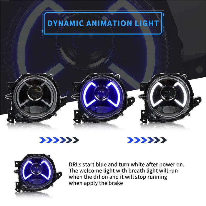 VLAND Faros LED/proyector para Suzuki Jimny 2018-2023 con luz LED azul de bienvenida DRL