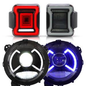 VLAND Full LED 9 inches Headlights and Tail Lights For 2018-2023 Jeep Wrangler JL, JLU