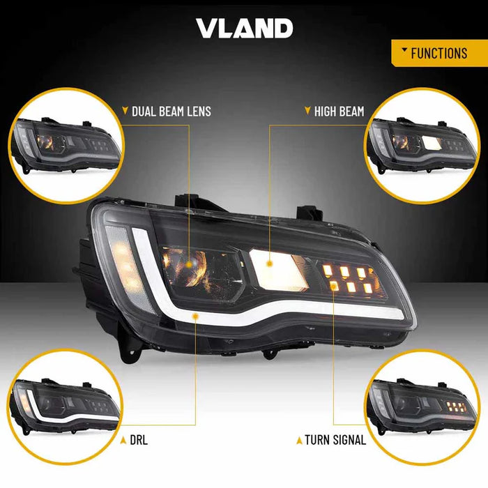 VLAND LED Projector Headlights For 2011–2023 Chrysler 300